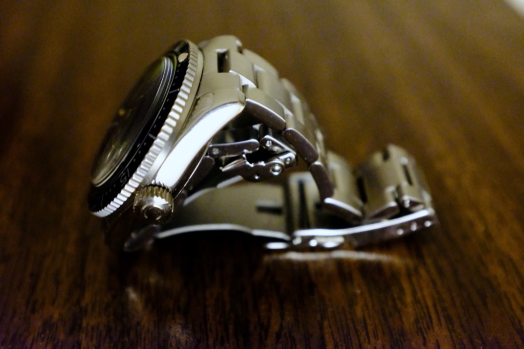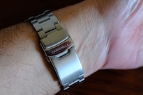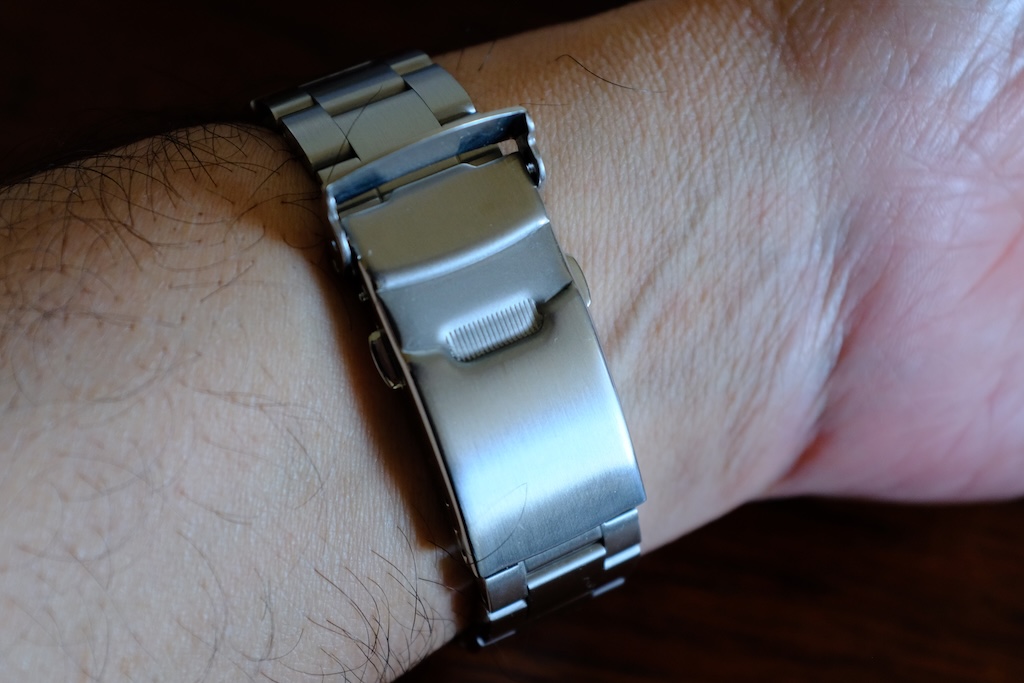 The style of the steel bracelet matches the watch perfectly, however the choice of manufacturer (made in China) leaves a lot to be desired; I would have paid slightly more money for a better bracelet. The bracelet does come with quick-release pins so it can be easily removed. It has a dual push-button release, three position micro-adjust and a branded safety-clasp.