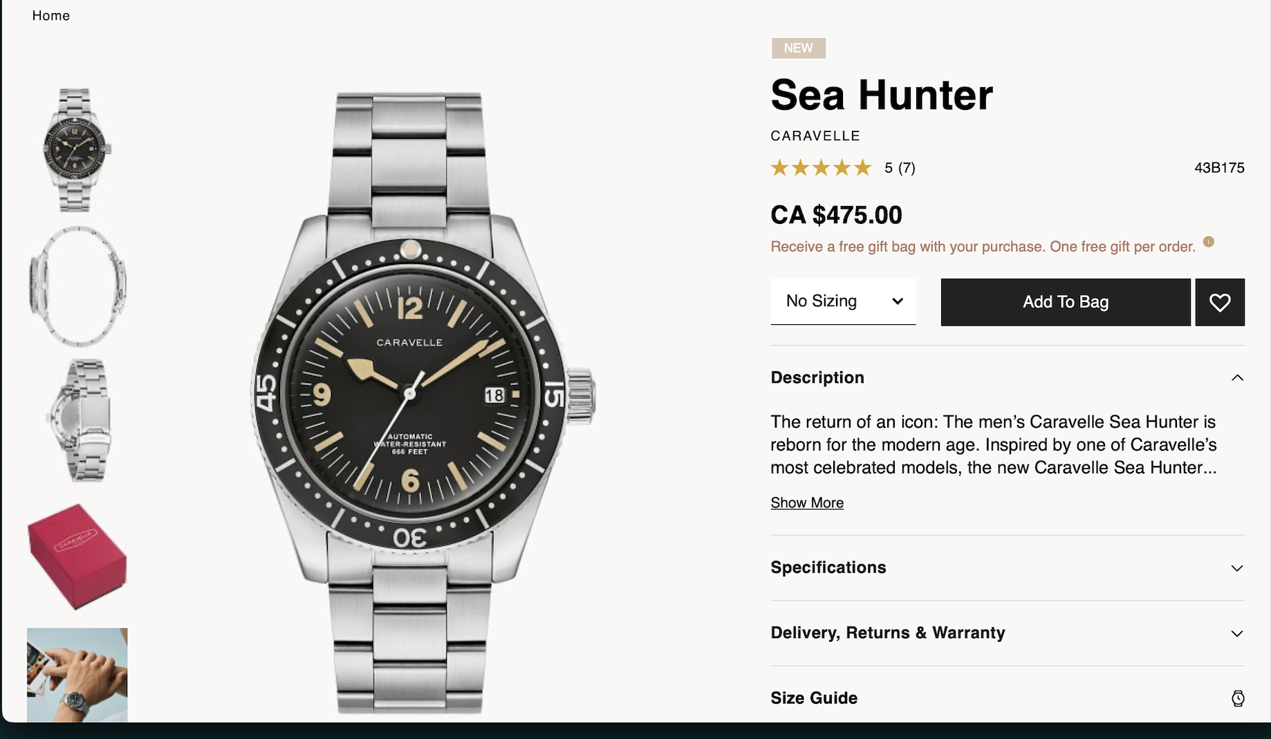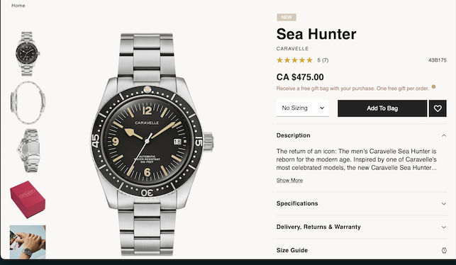 On September 23, I visited the Bulova website (I was automatically redirected to the Bulova Canada website) and found that the watch wasn’t yet available for purchase. So I contacted Bulova customer service (remember to include the model number of the watch, 43B175, you’re inquiring about, as the name alone is not sufficient to identify the watch) asking when it would be available in Canada and whether it would be sold on Amazon. The next day, I received a reply from Elyse who let me know that the Sea Hunter would be available exclusively on the Bulova Canada website, “in the next couple of weeks”.