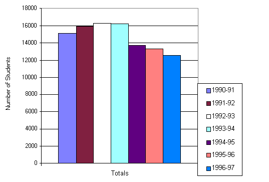 Men Studying Engineering at Ontario Universities 1990-1997