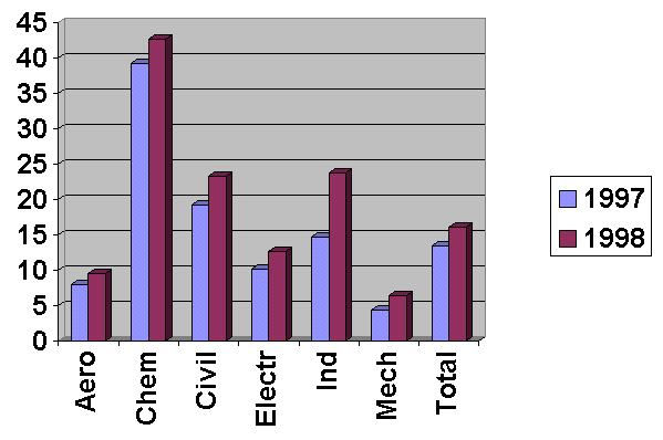 Percentage of Women Studying Engineering at Ryerson in 1997-98